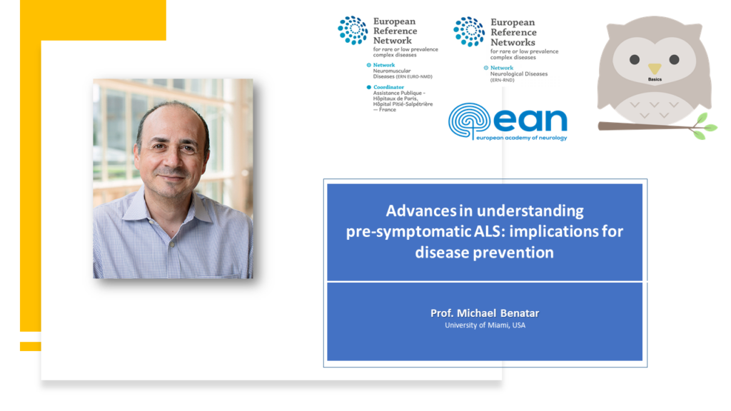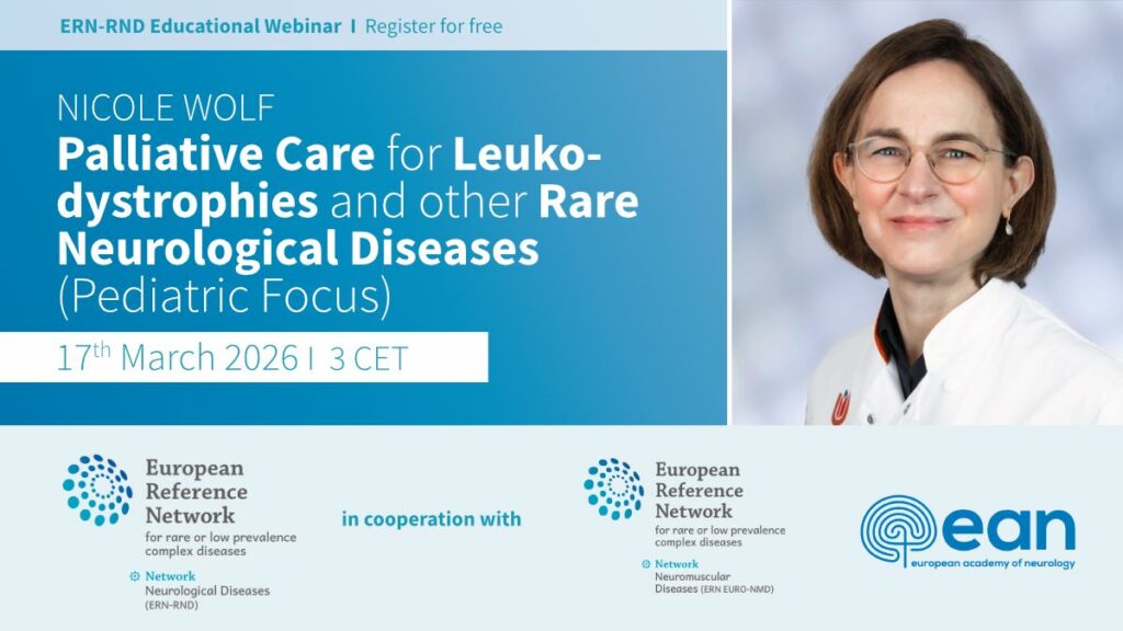 EURO-NMD provides educational webinars on a monthly basis to increase the knowledge around different specialist areas related to the neuromuscular field. Each webinar lasts approximately one hour with the opportunity for viewers to ask questions on the subject area. We are also collaborating with the European Reference Network for Rare Neurological Diseases (ERN-RND) and the European Academy of Neurology (EAN). If you have a particular subject you would like to present about please contact Elisabeth Avidi-Muelle or Antonio Atalaia who will find a suitable date and time.