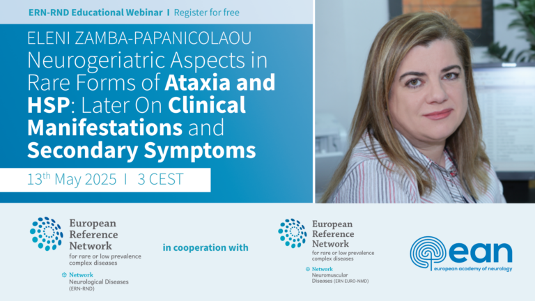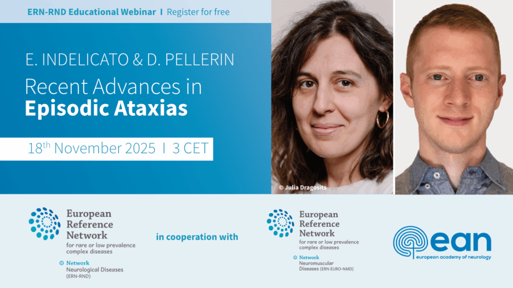EURO-NMD provides educational webinars on a monthly basis to increase the knowledge around different specialist areas related to the neuromuscular field. Each webinar lasts approximately one hour with the opportunity for viewers to ask questions on the subject area. We are also collaborating with the European Reference Network for Rare Neurological Diseases (ERN-RND) and the European Academy of Neurology (EAN). If you have a particular subject you would like to present about please contact Elisabeth Avidi-Muelle or Antonio Atalaia who will find a suitable date and time.
