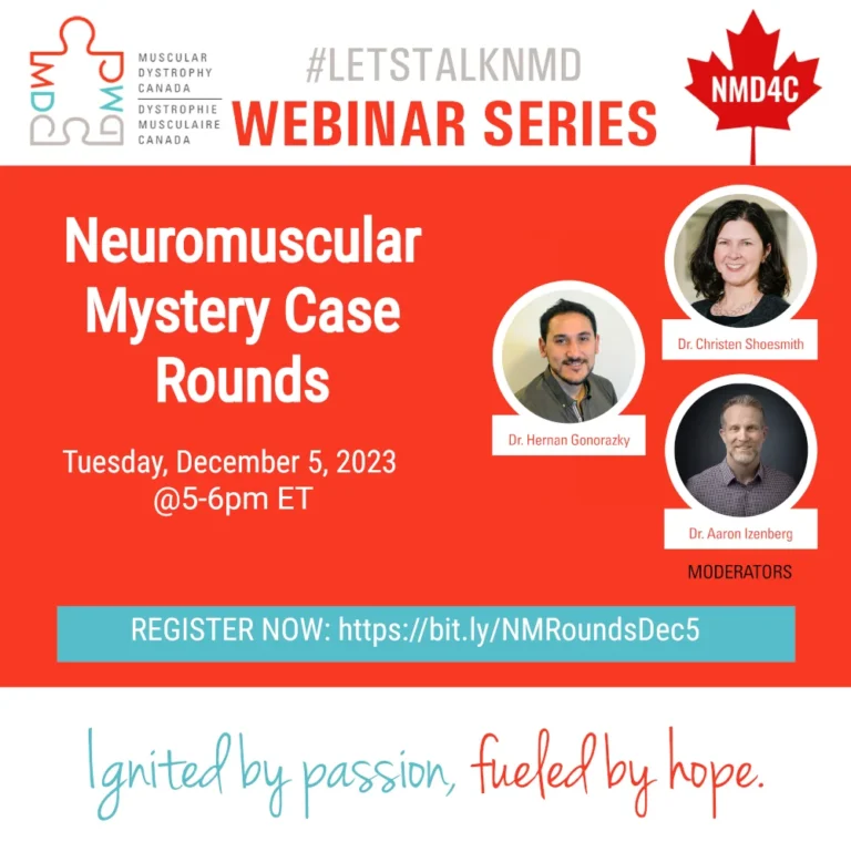 This case-based rounds webinar is for Canadian clinicians, academics, and trainees with an interest in neuromuscular disease. NMD4C and MDC are providing organizational and technical…