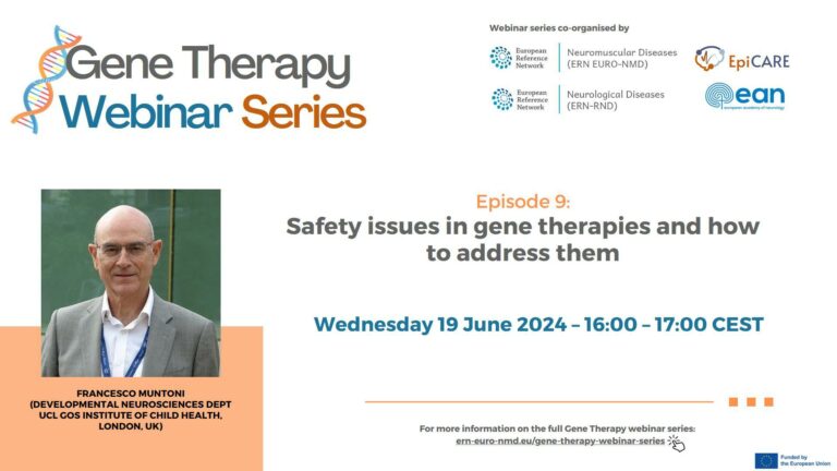 …TIMESLOT: Wednesday 19 June 2024 – 16:00 – 17:00 CEST …THEME: Safety issues in gene therapies and how to address them …PRESENTERS: Prof. Francesco Muntoni (University…