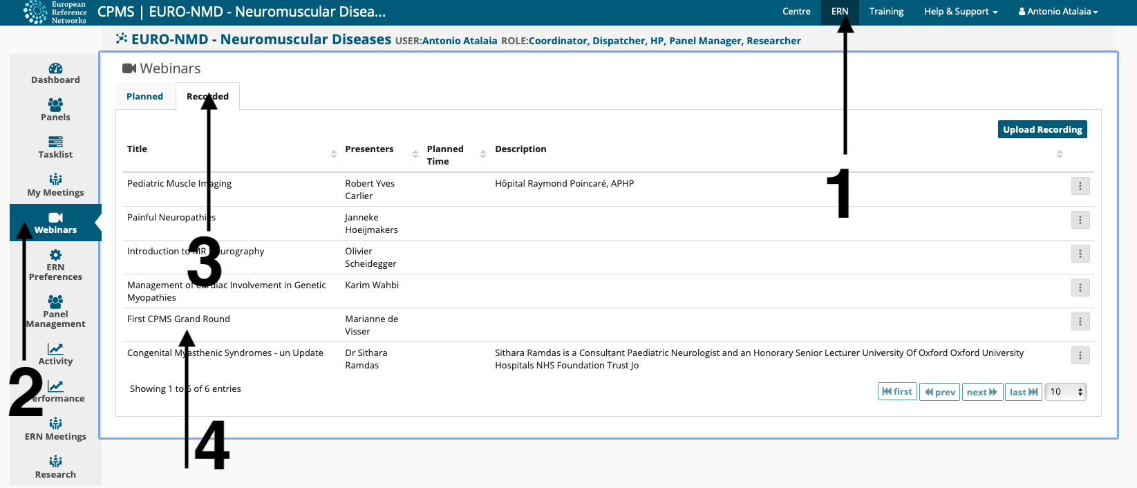 In the meantime we want to explain how to access the recorded video from the Grand Round. As these are sessions that are for Professionals we have not opted to make them available through our website or through the EURO-NMD YouTube channel. Only Professionals with access to CPMS will therefore be able to review these recorded sessions.