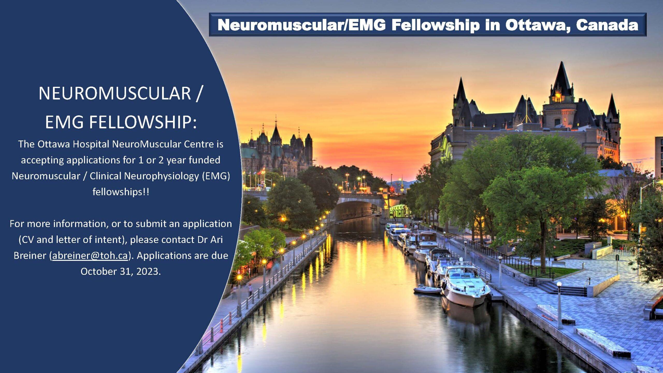 The Ottawa Hospital NeuroMuscular Centre is accepting applications for 1 or 2 year funded Neuromuscular / Clinical Neurophysiology (EMG) fellowships!!